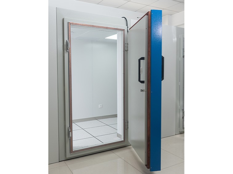 屏蔽室的進出通道,適用于所有規(guī)格的屏蔽室、微、電波暗室、局放屏蔽室。采用插刀式結構、鉸鏈轉動,是現今使用較為廣泛的電磁屏蔽門。